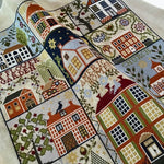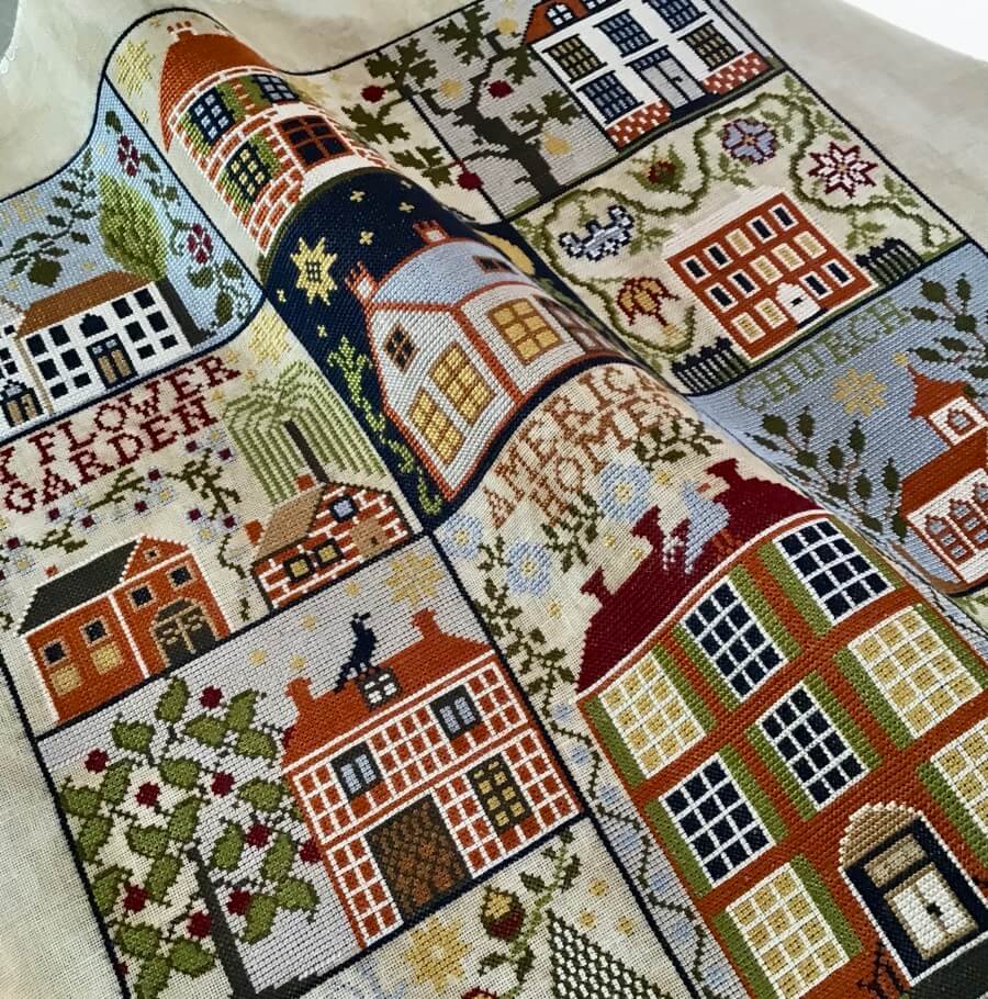 Häuser umgeben von Gärten sind das zentrale Motiv amerikanischer Stickmustertücher. Oft haben die jungen Stickerinnen versucht, ihr Elternhaus nachzuempfinden. Umso anrührender wirken diese Häuser in ihrer ganzen Verschiedenheit heute auf uns.