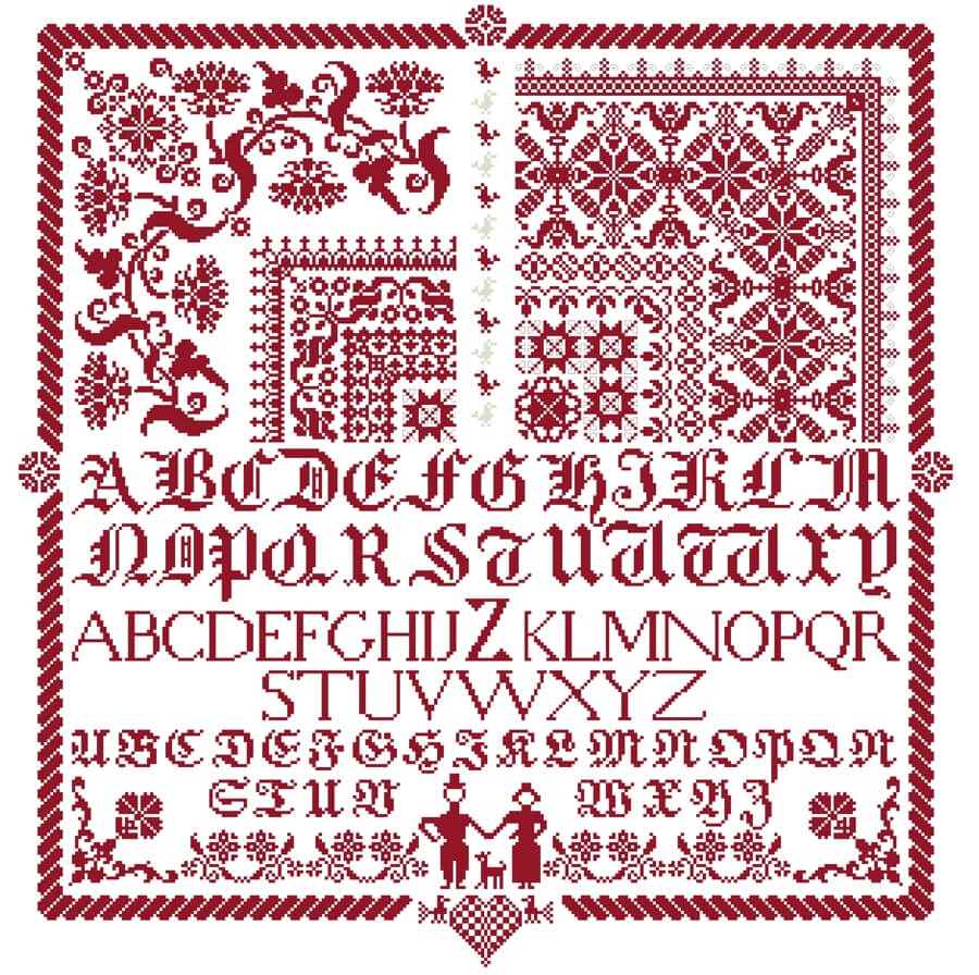 Das Mustertuch "Bauernhochzeit" besticht durch seine Rustikalität hervorgerufen durch das ungebleichte Leinen auf dem gestickt wird. Es eignet sich ideal, um zu einer Hochzeit gestickt zu werden. In der Vorlage liegen mehrere komplette Alphabete, so dass man die Initialen der Brautleute ganz individuell in das Tuch einfügen kann.