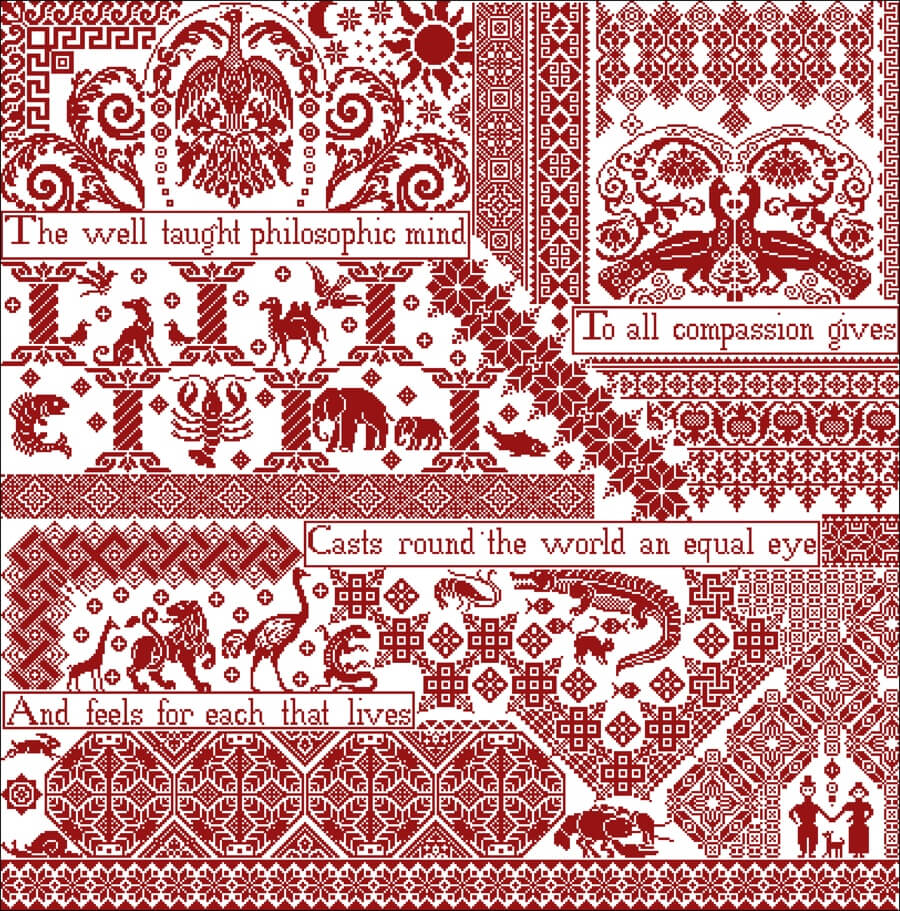 Dieses Tuch ist eine wahre Fundgrube von Mustern. Tiere spielen die zentrale Rolle.