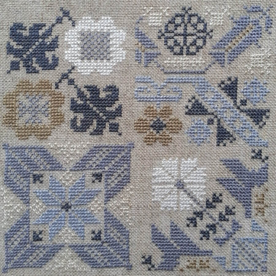 Nach ein paar Kissenbezügen, die ich mit Begeisterung gestickt habe, fand mich ein Buch mit Siebenbürger Mustern, die mir immer besser gefielen. Was würde geschehen, wenn man sie nicht in kräftigem rot oder braun stickt, sondern in zarten Farben auf feinem Leinen? - So entstand Siebenbürgen 1.