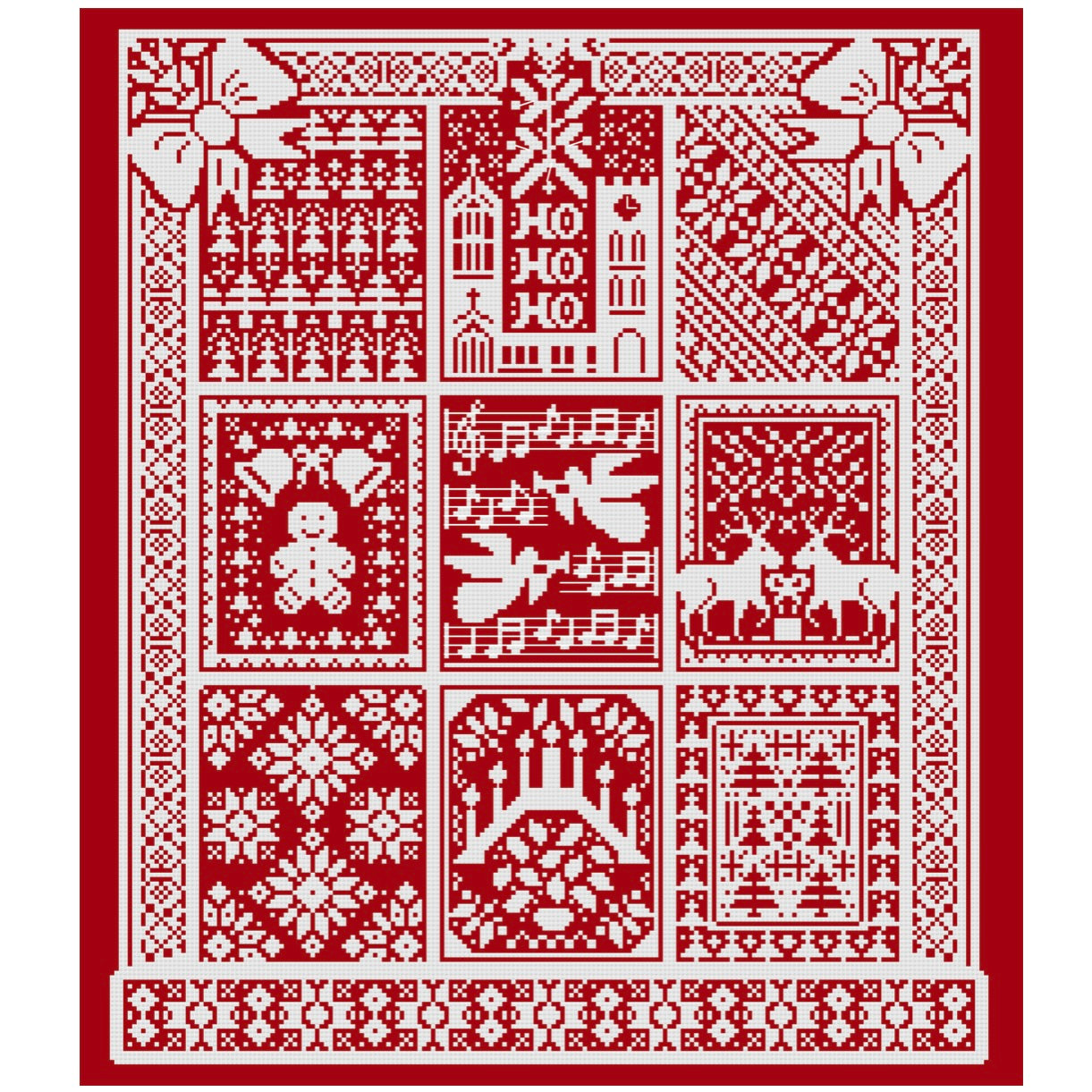Die Stickmuster der britischen Designerin Elaine Gallacher sind zeitlose Klassiker. Elaine feiert in ihren Designs die britische Lebensart. Dieses Mustertuch enthält alle Zutaten für ein traditionelles britisches Weihnachtsfest!