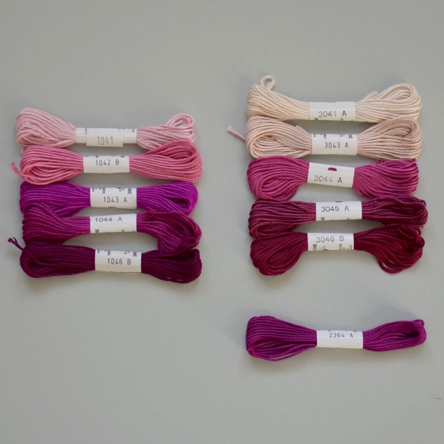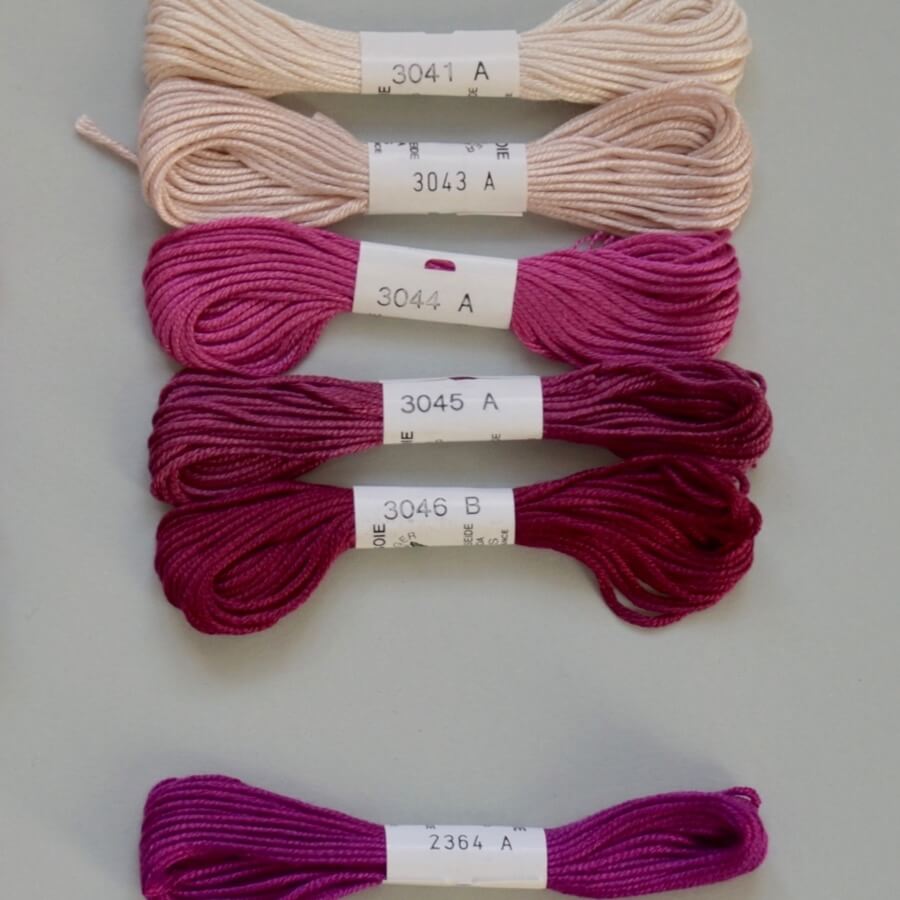 Soie d'Alger ist das klassische Universalstickgarn, das es in 619 Farben gibt. Es wird in Döckchen von fünf Metern Länge geliefert und liegt 7-fädig, das heißt, man hat 35 laufende Meter Garn zur Verfügung, wenn man mit einem Faden stickt. Daneben gibt es von allen Farben auch größere Gebinde von 45 Metern. Mit einem Faden kann man im Kreuzstich auf 16er, auf 14er und auch noch auf 12er Leinen sticken. Ebenso eignet sich das Garn zum Sticken im Petit Point Stich und vielen weiteren Stickstichen auf den genannten Leinenstärken. Soie d'Alger ist ein aus kürzeren Seidenfäden gesponnenes Garn, diese sogenannten Schappegarne sind glatt, regelmäßig und haben einen leichten Glanz.