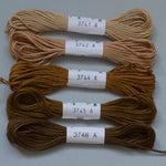 Soie d'Alger ist das klassische Universalstickgarn, das es in 619 Farben gibt. Es wird in Döckchen von fünf Metern Länge geliefert und liegt 7-fädig, das heißt, man hat 35 laufende Meter Garn zur Verfügung, wenn man mit einem Faden stickt. Daneben gibt es von allen Farben auch größere Gebinde von 45 Metern. Mit einem Faden kann man im Kreuzstich auf 16er, auf 14er und auch noch auf 12er Leinen sticken. Ebenso eignet sich das Garn zum Sticken im Petit Point Stich und vielen weiteren Stickstichen auf den genannten Leinenstärken. Soie d'Alger ist ein aus kürzeren Seidenfäden gesponnenes Garn, diese sogenannten Schappegarne sind glatt, regelmäßig und haben einen leichten Glanz.