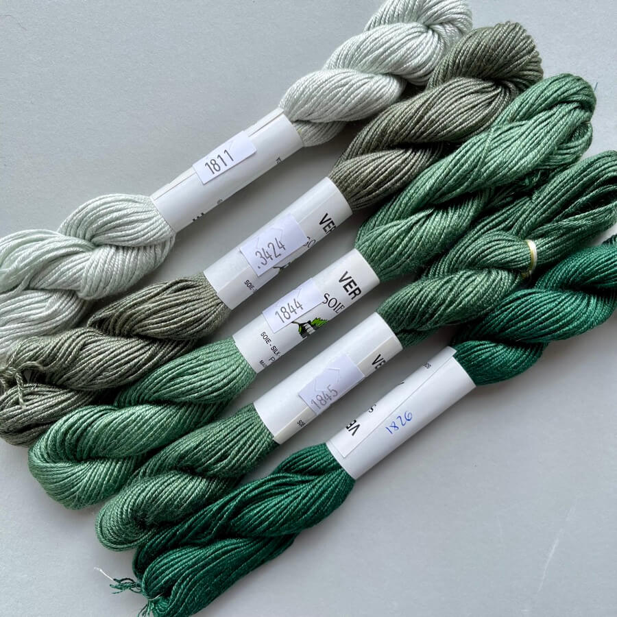 Soie d'Alger ist das klassische Universalstickgarn, das es in 619 Farben gibt. Es wird in Döckchen von fünf Metern Länge geliefert und liegt 7-fädig. Die großen 45 m Docken entsprechen 9 kleinen Döckchen. Mit einem Faden kann man im Kreuzstich auf 16er, auf 14er und auch noch auf 13er Leinen sticken. Ebenso eignet sich das Garn zum Sticken im Petit Point Stich und vielen weiteren Stickstichen auf den genannten Leinenstärken. Soie d'Alger ist ein aus kürzeren Seidenfäden gesponnenes Garn, diese sogenannten Schappegarne sind glatt, regelmäßig und haben einen leichten Glanz.