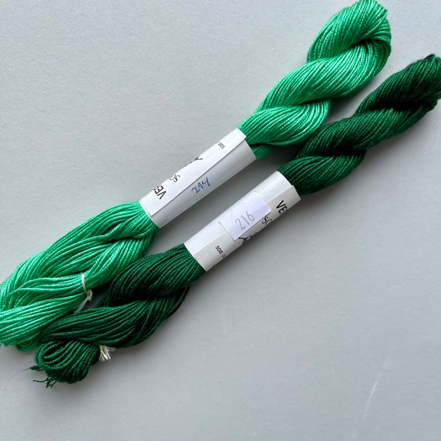 Soie d'Alger ist das klassische Universalstickgarn, das es in 619 Farben gibt. Es wird in Döckchen von fünf Metern Länge geliefert und liegt 7-fädig. Die großen 45 m Docken entsprechen 9 kleinen Döckchen. Mit einem Faden kann man im Kreuzstich auf 16er, auf 14er und auch noch auf 13er Leinen sticken. Ebenso eignet sich das Garn zum Sticken im Petit Point Stich und vielen weiteren Stickstichen auf den genannten Leinenstärken. Soie d'Alger ist ein aus kürzeren Seidenfäden gesponnenes Garn, diese sogenannten Schappegarne sind glatt, regelmäßig und haben einen leichten Glanz.