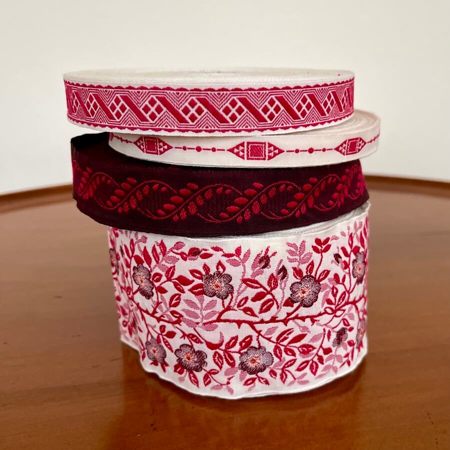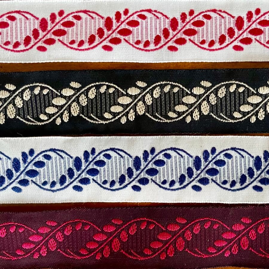 Wir führen Bänder der Firmen Acufactum und der Bandweberei Kafka. Diese Bänder passen perfekt zu Kreuzsticharbeiten. Der Phantasie sind hinsichtlich Kombination und Farben keine Grenzen gesetzt. Webbänder der Bandweberei Kafka aus Wuppertal werden auf 25 alten Jacquard-Webstühlen aus dem 19. Jahrhundert gewebt. Schön, dass es diese traditionellen Muster und textilen Schätze noch gibt.