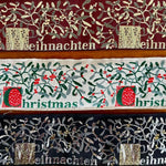 Die Bandweberei Kafka webt auf alten Jacquard-Webstühlen aus dem 19.ten Jahrhundert Bänder in alter Tradition in unübertroffener Qualität. Ein Klassiker sind die Weihnachtswebbänder, die zur Verzierung von Kissen, in Kombination mit Kreuzstichmustern, als Tischbänder in der Weihnachtszeit oder in Passepartoutkarten verwendet werden können. Der Phantasie sind keine Grenzen gesetzt. Was ist weihnachtlicher als gewebte Mistelzweige?