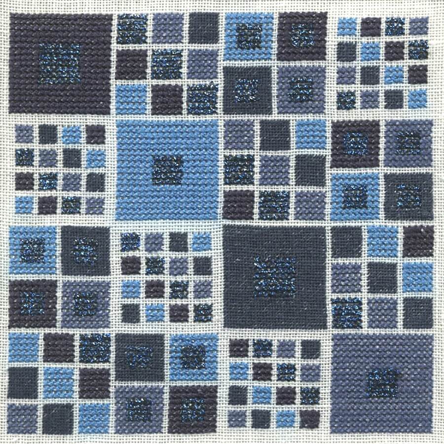 "E-Abstrakt 8" haben wir speziell für die Kennenlernpakete des französischen Seidengarnherstellers Au Ver à Soie entwickelt. Die Entdeckerpäckchen enthalten 5 unterschiedliche Seidengarne. Darunter immer ein Soie d'Alger, Soie Perlée und Metallic-Garn. Alle fünf Garne kann man wunderbar gemeinsam verarbeiten.