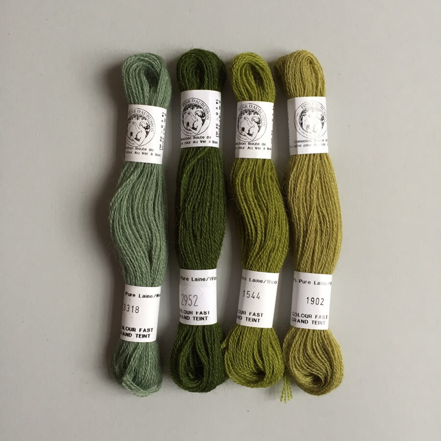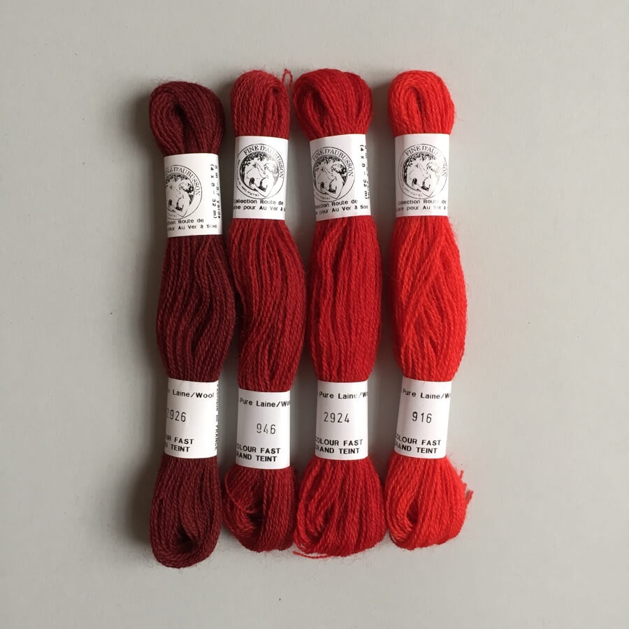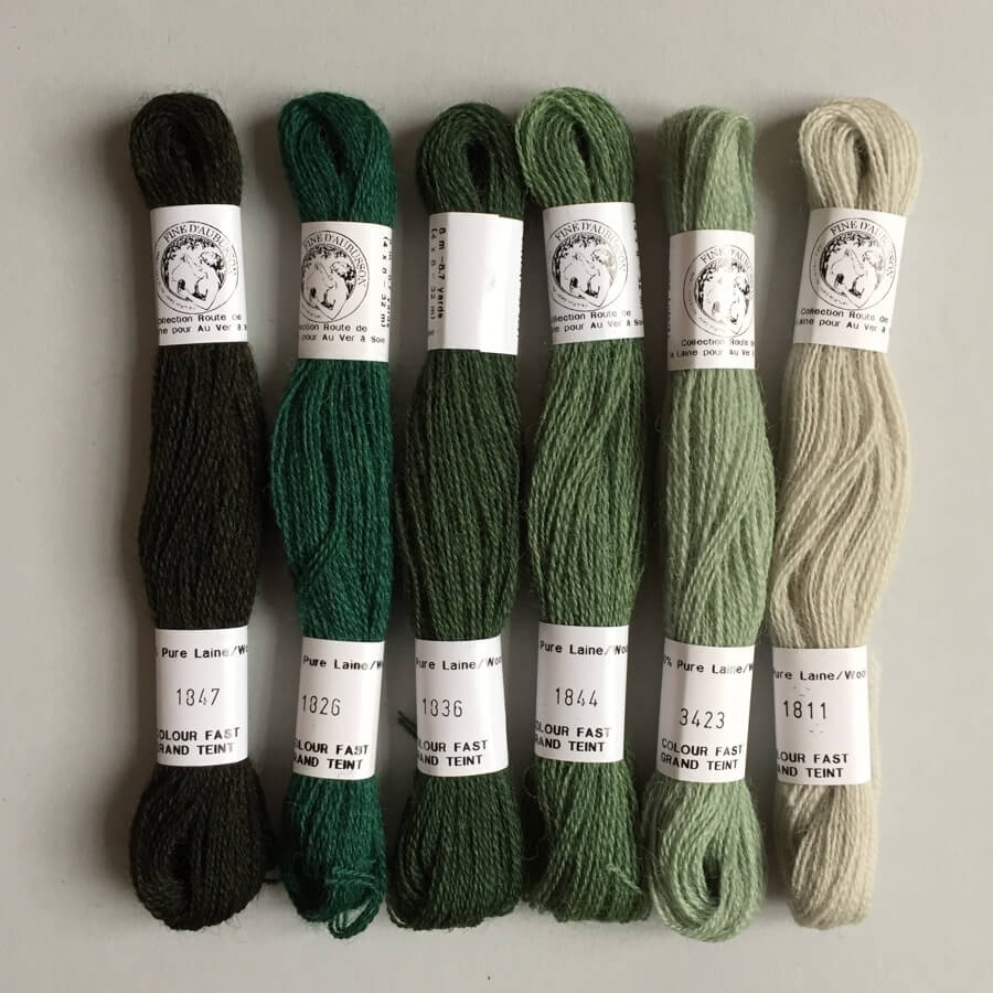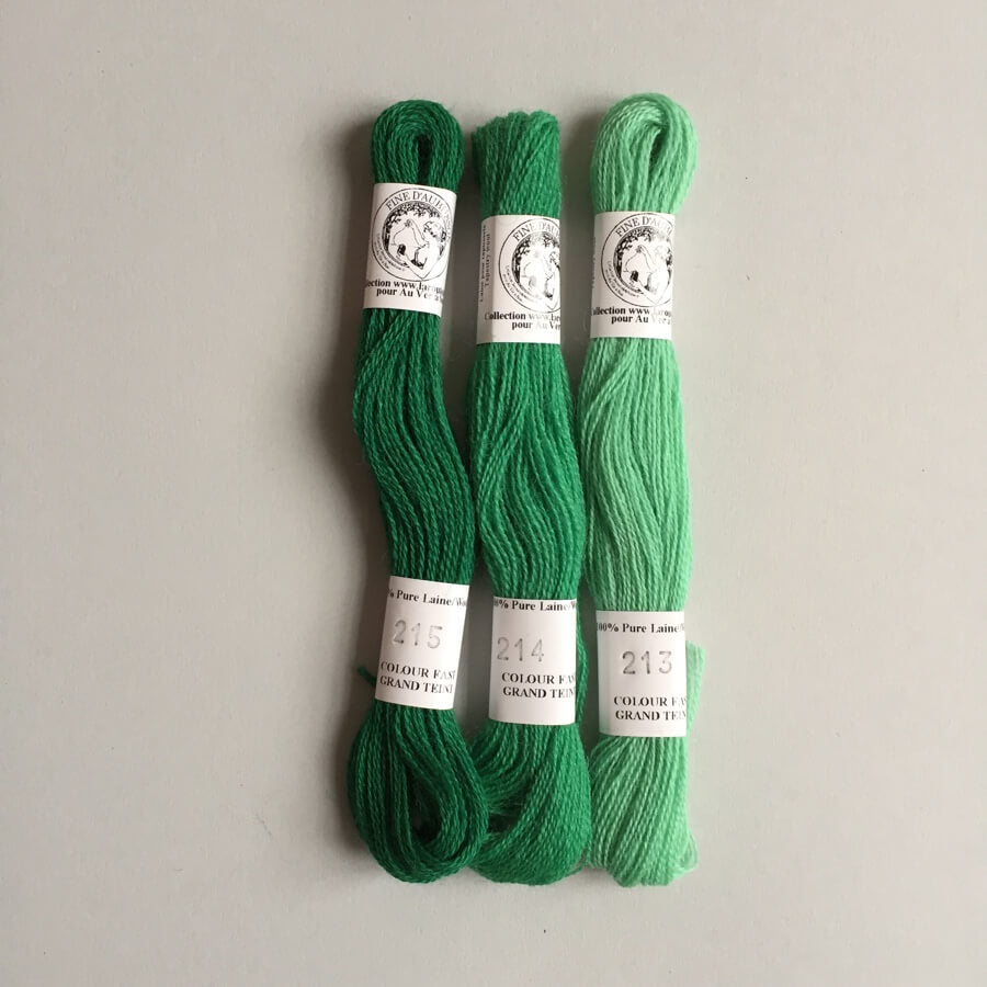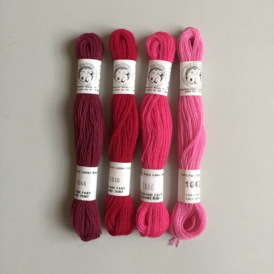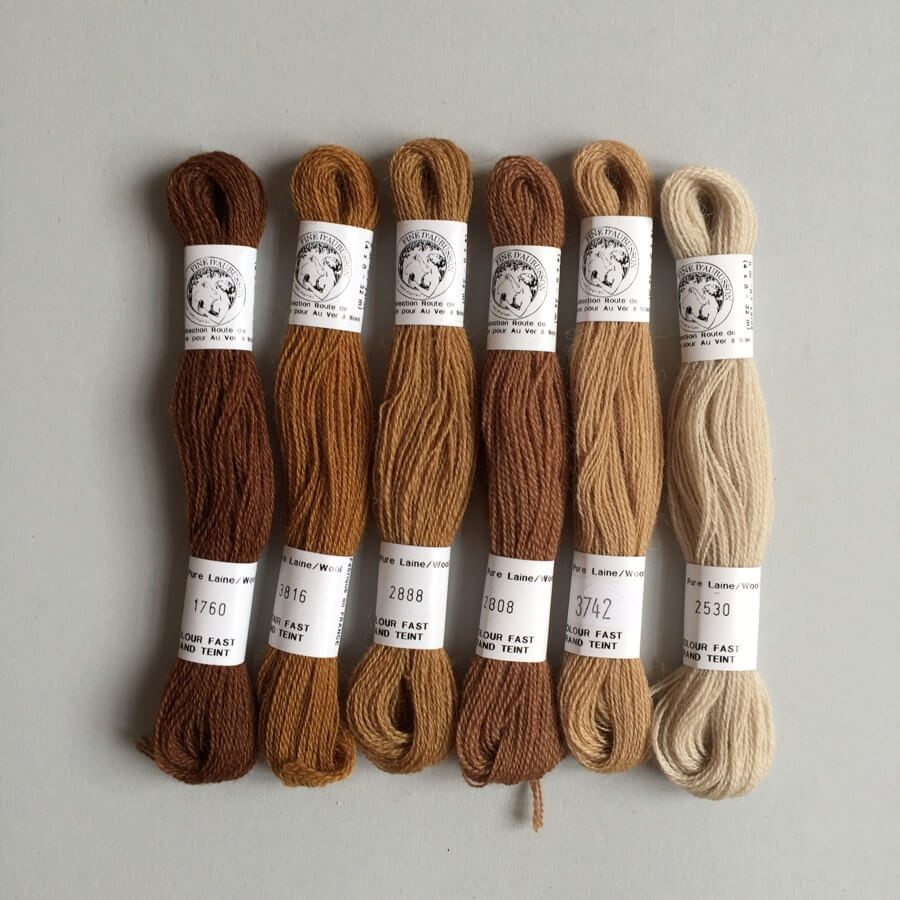 Laine Fine d´Aubusson ist feinste Merinowolle. Die Wolle kommt auf Döckchen zu 8 m und liegt 4 fädig, so dass man 32 m Länge zum Sticken hat. Sie eignet sich für feinste Tapisseriearbeiten. Die Wolle gibt es in 130 Farben, genug um wunderschöne Farbkombinationen entstehen zu lassen.