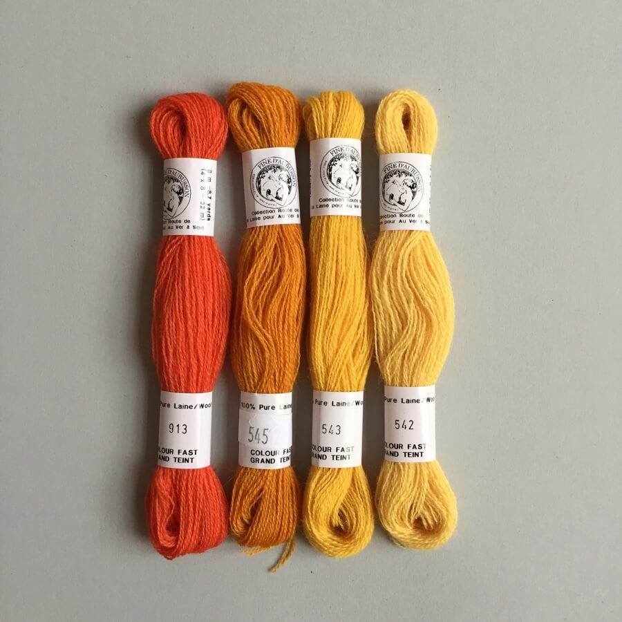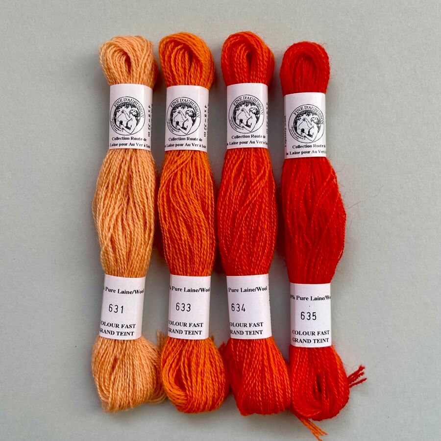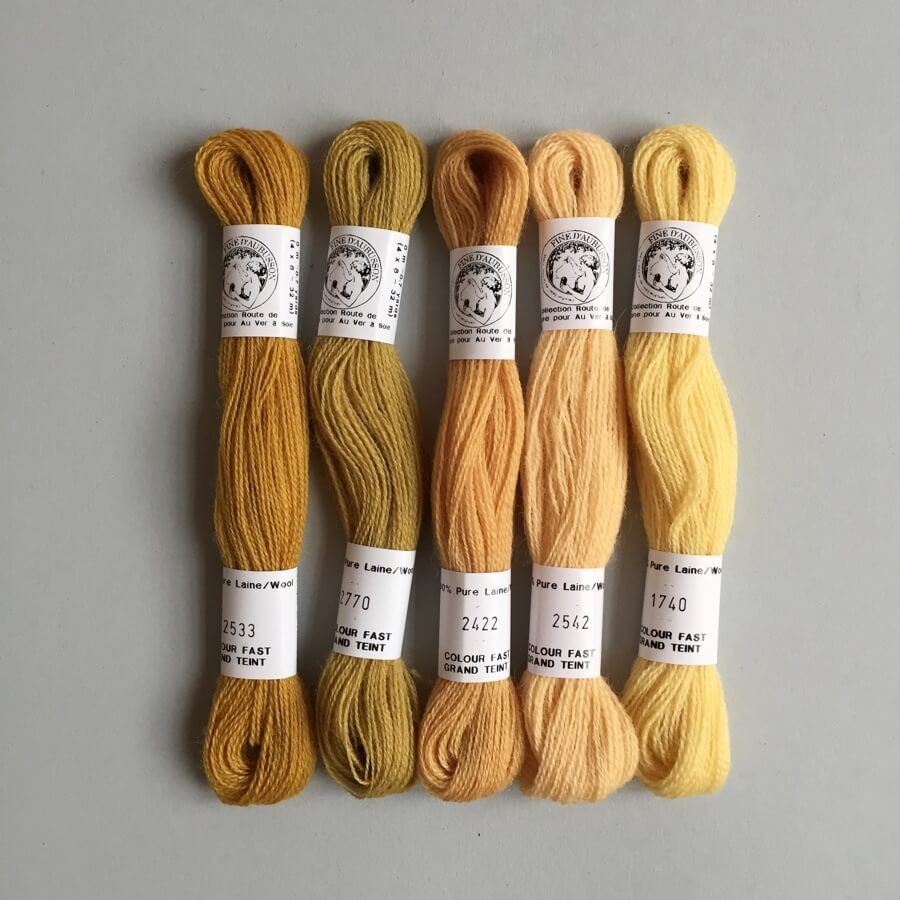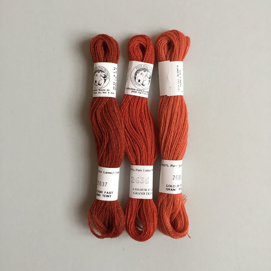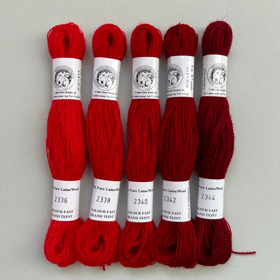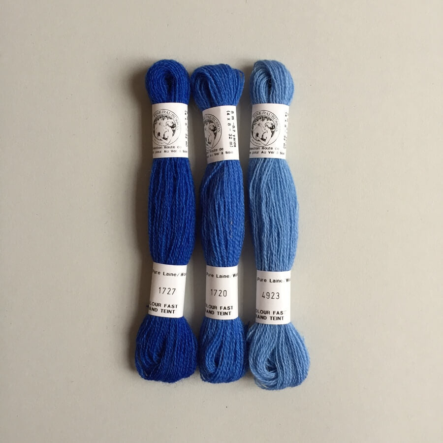 Laine Fine d´Aubusson ist feinste Merinowolle. Die Wolle kommt auf Döckchen zu 8 m und liegt 4 fädig, so dass man 32 m Länge zum Sticken hat. Sie eignet sich für feinste Tapisseriearbeiten. Die Wolle gibt es in 130 Farben, genug um wunderschöne Farbkombinationen entstehen zu lassen.