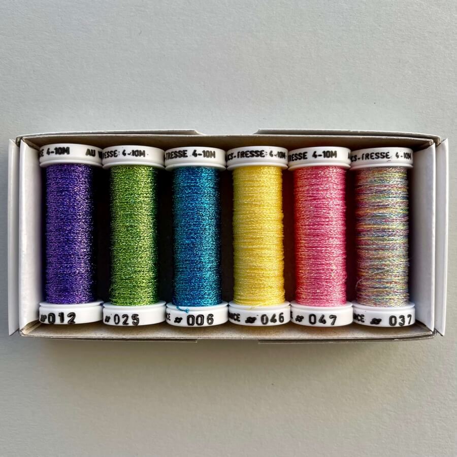 Das Paket Metallicgarn enthält 6 Spulen zu je 10 m.