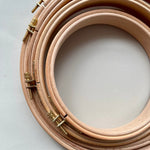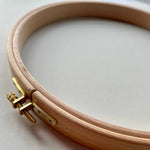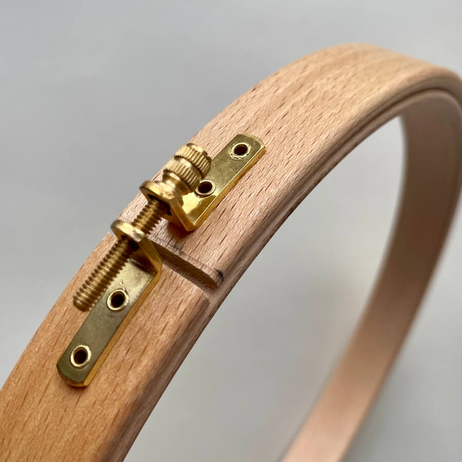 Unsere Stickringe gibt es in vier verschiedenen Durchmessern. Die Stickringe sind aus hartem, widerstandsfähigem Buchenholz. Die Ringe sind unten mit einer flachen Kante versehen, oben mit einer gerundeten Kante, über die der Stickstoff gezogen wird. Die gerundete Kante schont den Stoff, mit der Schraube kann man den Stoff zwischen den Ringen gut fixieren. Wichtig ist die Höhe der Stickringe, die 2,5 cm beträgt, so dass der Ring während des Stickens gut in der Hand liegt.
