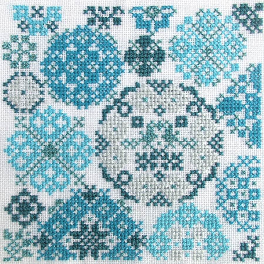 Traditionelles Muster mit unterschiedlichen Garnen aus dem "Entdeckerpäckchen TÜRKIS".