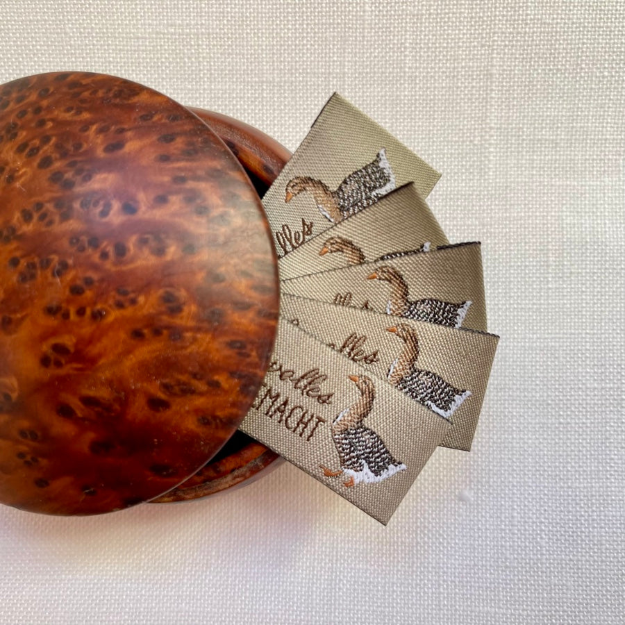 Mit unseren wunderschönen Webetiketten lässt sich jede Handarbeit, ob gestickt, gestrickt, gewebt oder genäht individualisieren und zu etwas ganz Besonderem machen. Falls eine Handarbeit verschenkt werden soll, vermitteln diese Etiketten dem Beschenkten eine kleine, liebevolle Botschaft.