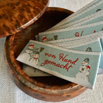 Mit unseren wunderschönen Webetiketten lässt sich jede Handarbeit, ob gestickt, gestrickt, gewebt oder genäht individualisieren und zu etwas ganz Besonderem machen. Falls eine Handarbeit verschenkt werden soll, vermitteln diese Etiketten dem Beschenkten eine kleine, liebevolle Botschaft.