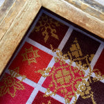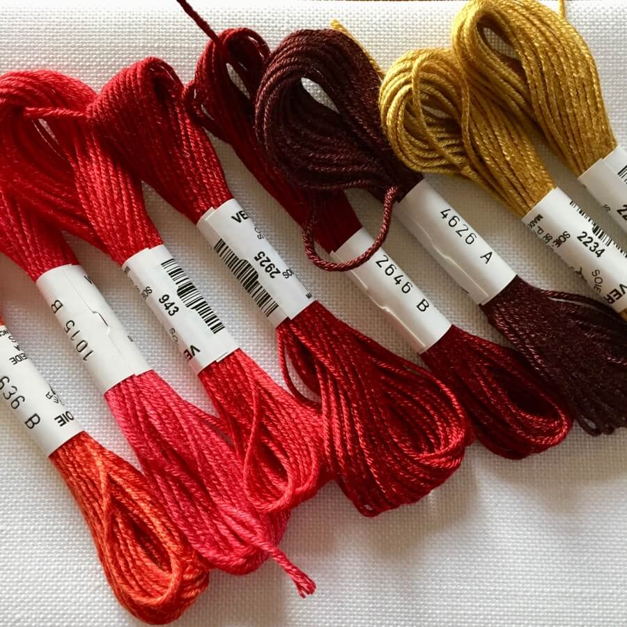 We offer you two different cross stitch kits. You can either stitch the entire pattern with our universal silk floss Soie d`Alger or replace the gold tone with the high-gloss Soie de Paris.