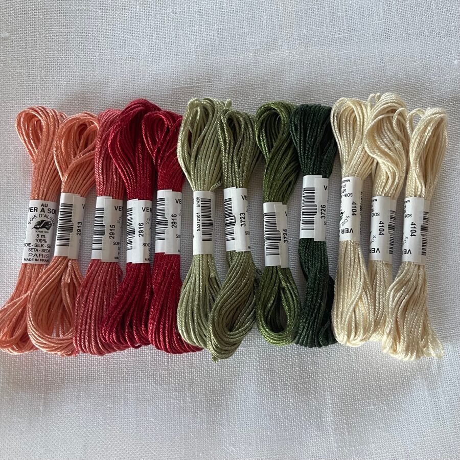 The pattern is available individually or as a kit including chart, linen, silk floss and needle.
